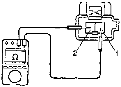 Disconnect the solenoid connector. Using an ohmmeter, measure resistance between line terminals.