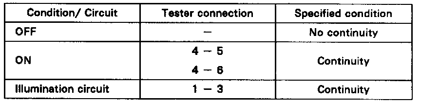 If continuity is not as specified, replace the switch.