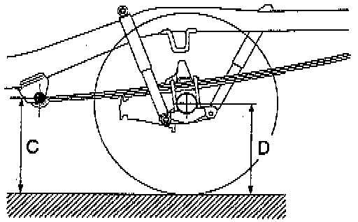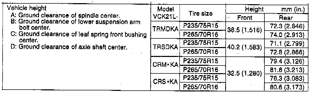 C: Rear leaf spring front bushing height measured at its center.