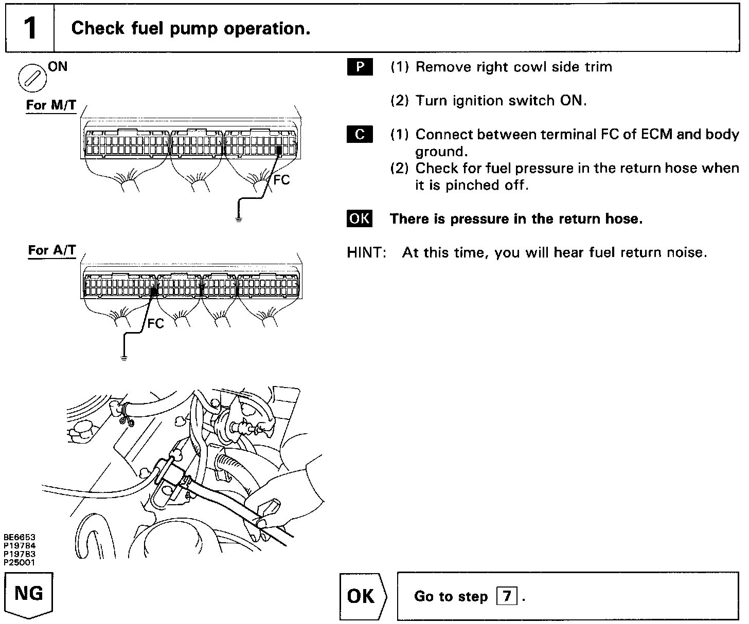 While the NE signal is generated (engine running), the ECM keeps Tr ON (circuit opening relay ON) and the fuel pump also keeps operating.
