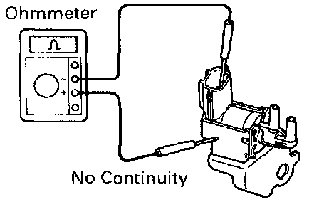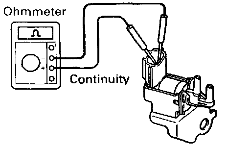 Using an ohmmeter, check that there is no continuity between each terminal and the body.