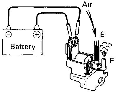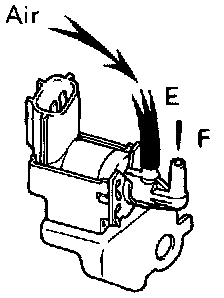 (c) Check that air flows from pipe E to pipe F. If operation is not as specified, replace the VSV.