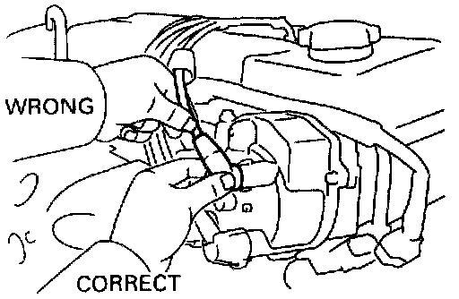 - Do not wipe any of the oil from the grommet after the high-tension cord is disconnected.