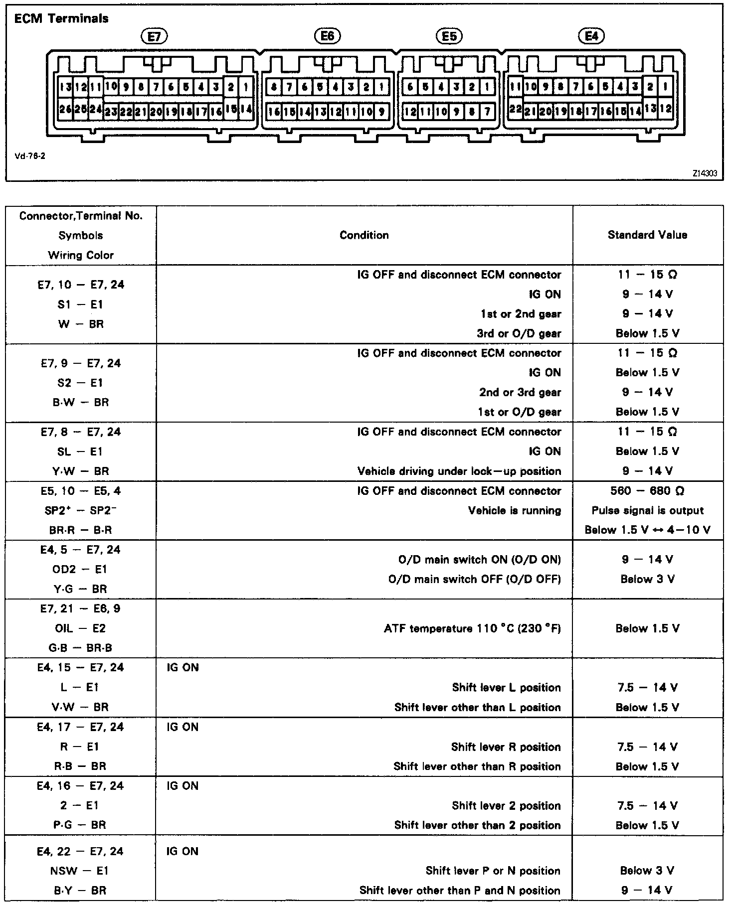 Pinout Values and Diagnostic Parameters