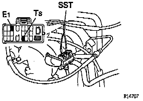 (a) Using Special Service Tool (SST) # 09843 - 18020, connect terminals Ts and E1 of the Data Link Connector (DLC)1.