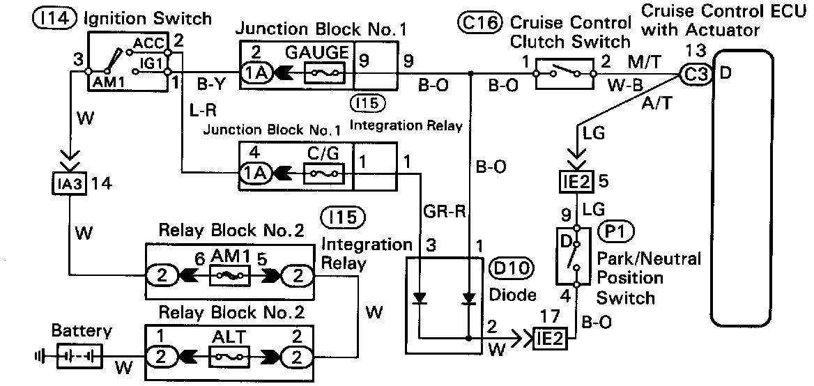 When the clutch pedal is depressed, the clutch switch sends a signal to the cruise control ECU. When the signal is input to the cruise control ECU during cruise control driving, the cruise control ECU cancels cruise control.