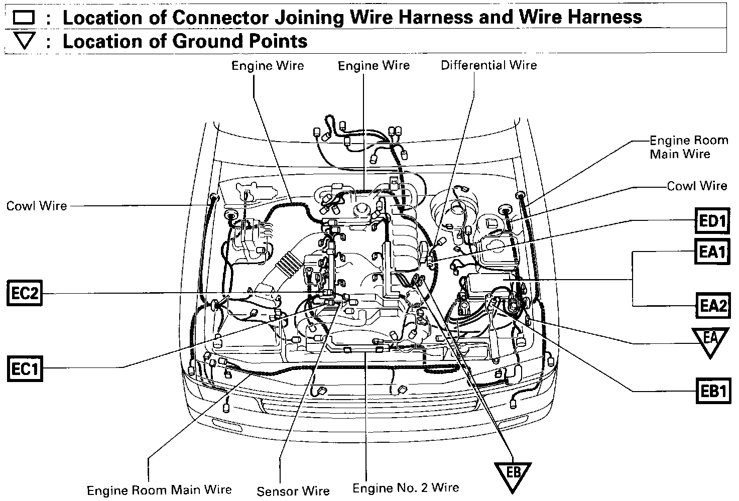 Location Of Connector Joining Wire Harness And Wire Harness Ground Points (Fig 34):