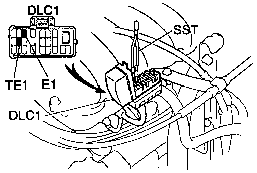 Using SST. connect terminals TE1 and E1 of the DLC1. SST 09843-18020
