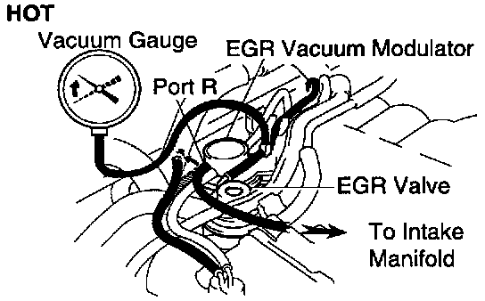 (c) Disconnect the vacuum hose from port R of the EGR vacuum modulator and connect port R directly to the intake manifold with another hose.