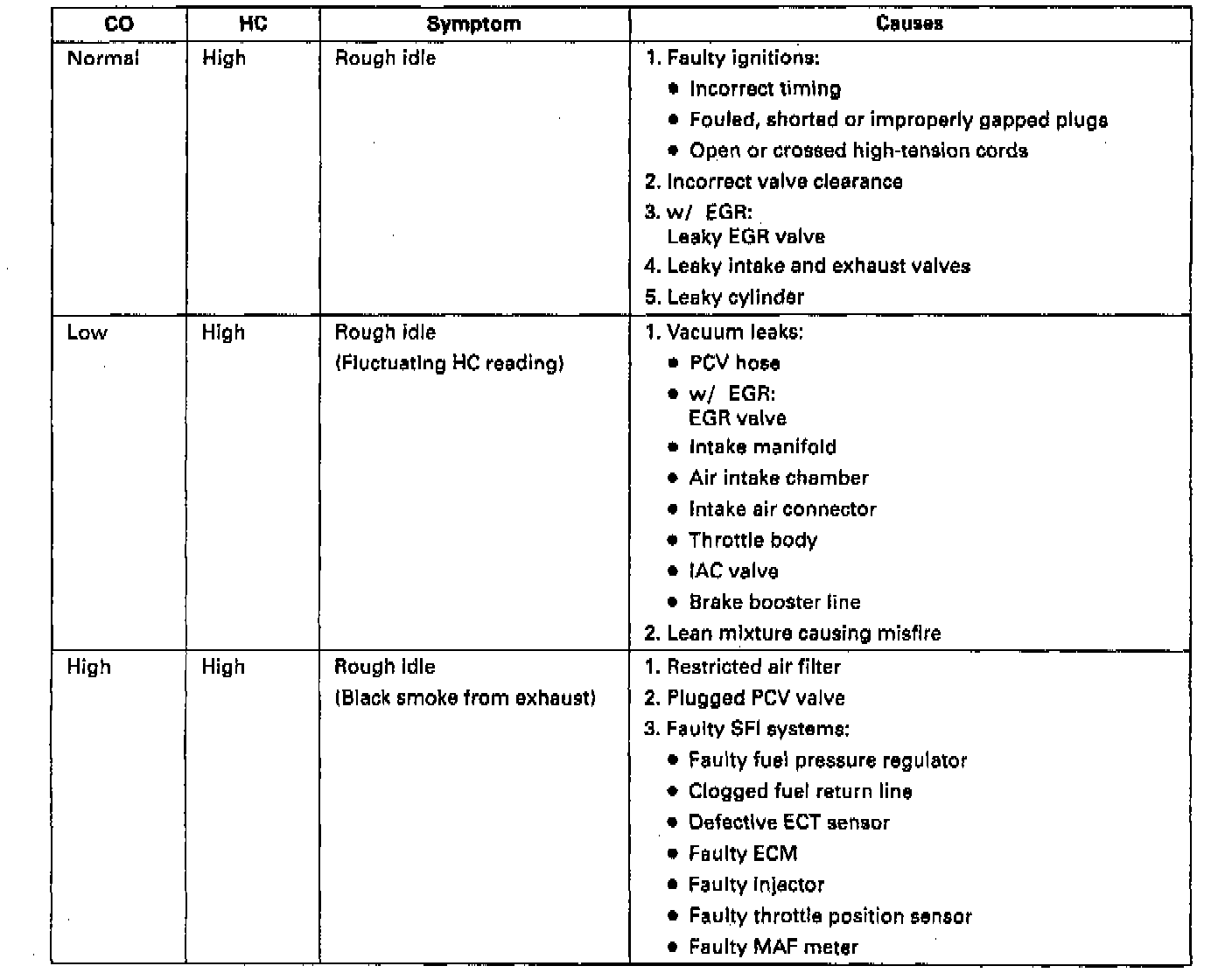 5. Immediately check CO/HC concentration at idle and/or 2,500 RPM.