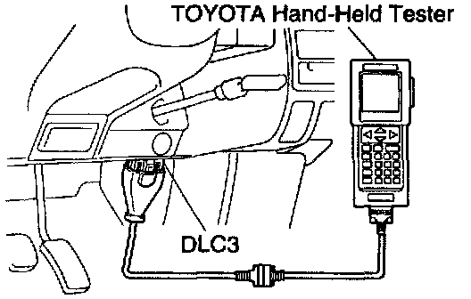 To check the DTCs, connect the OBD II scan tool or TOYOTA hand-held tester to DLC3 on the vehicle. The OBD II scan tool or TOYOTA hand-held tester also enables you to erase the DTCs and check freeze frame data and various forms of engine data. (For operating instructions, see the OBD II scan tool's instruction book.)
