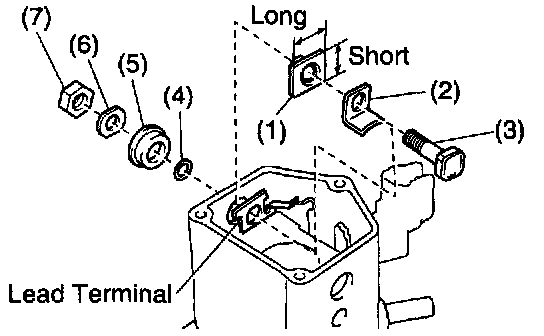 Remove the terminal nut, wave washer, terminal insulator (outside), packing, O-ring, terminal bolt, contact plate, terminal insulator (inside) and insulation paper.