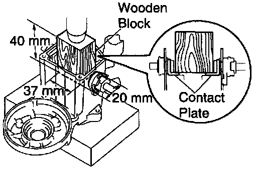 a. Put a wooden block on the contact plate and press it down with a hand press.