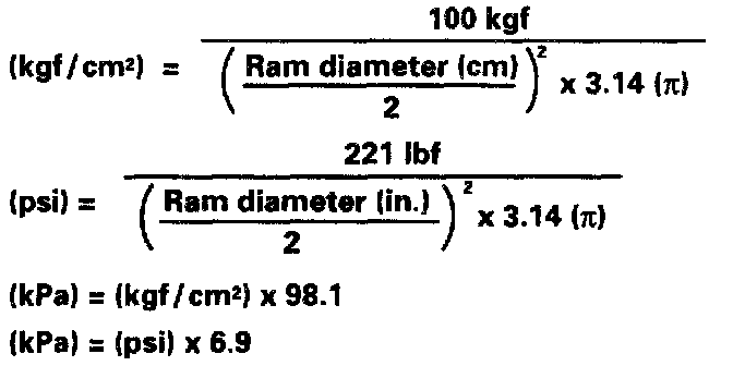 NOTE: Check the diameter of the hand press ram. Then calculate the gauge pressure of the press when 981 N (100 kgf, 221 lbf) of force is applied.