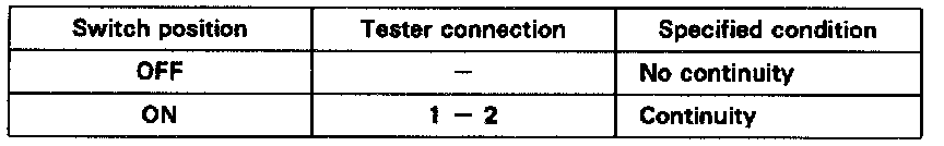 If continuity is not as specified, replace the switch.