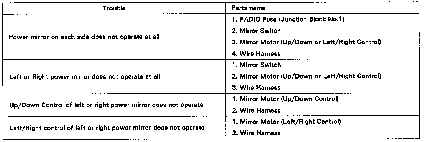 Troubleshooting / Power Mirror Control System: