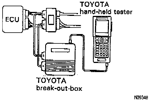 1. Hook up the hand-held tester and break-out-box to the vehicle.