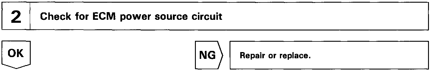 When the STA signal and NE signal are input to the ECM, Tr is turned ON, current flows to coil L2 of the circuit opening relay, the relay switches on and the fuel pump operates.
