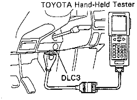 (a) Connect the hand-held tester or OBD II scan tool or equivalent to the Data Link Connector (DLC)3.