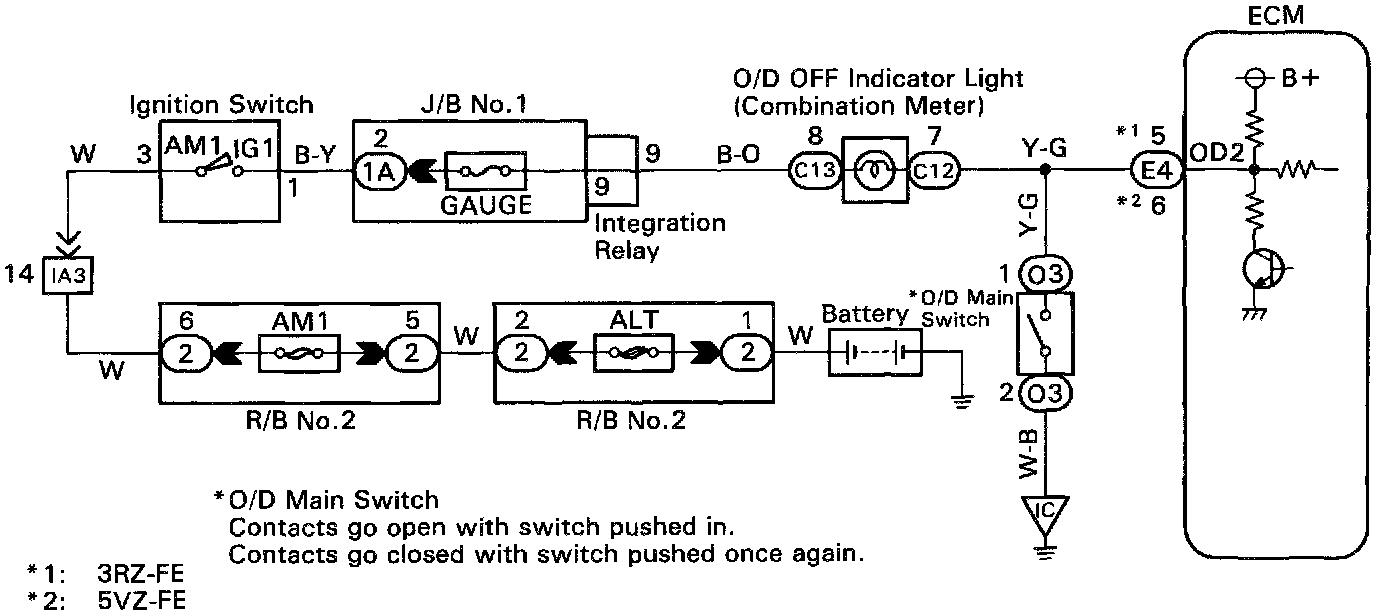 O/D Main Switch & O/D Off Indicator Light Circuit