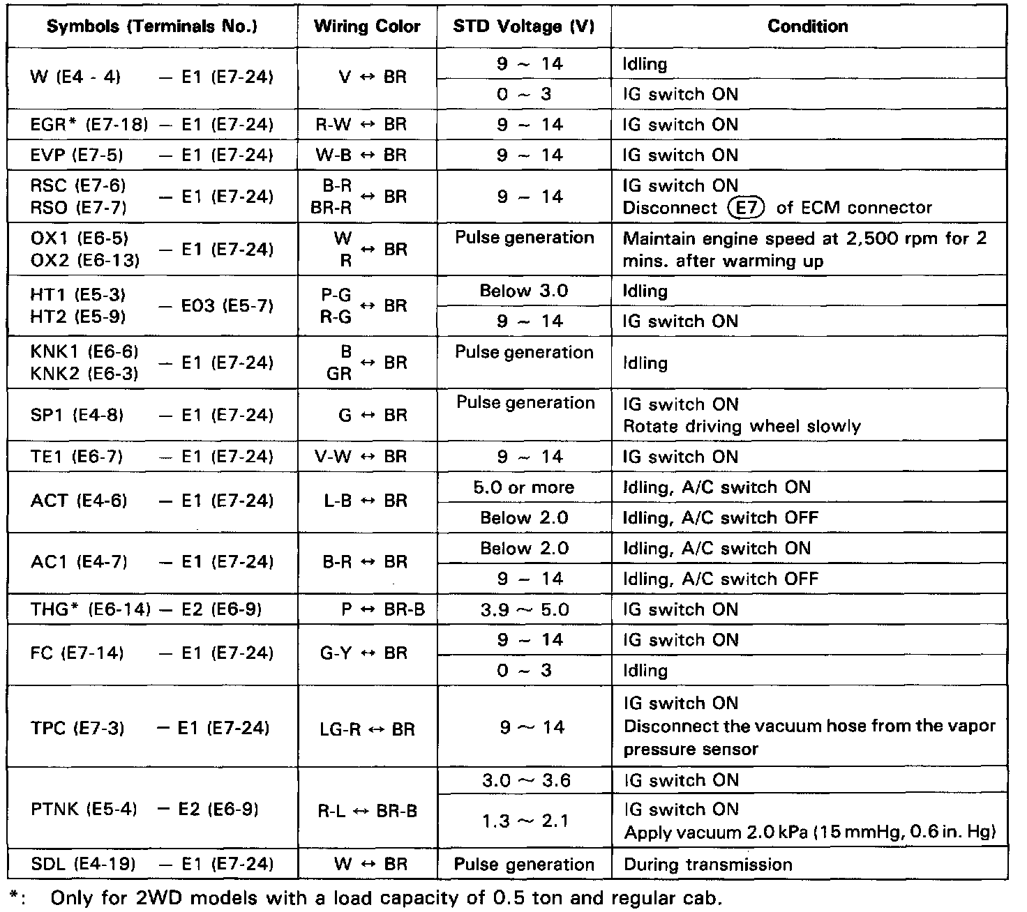 Standard Values Of ECM Terminals Chart 2 Of 2: