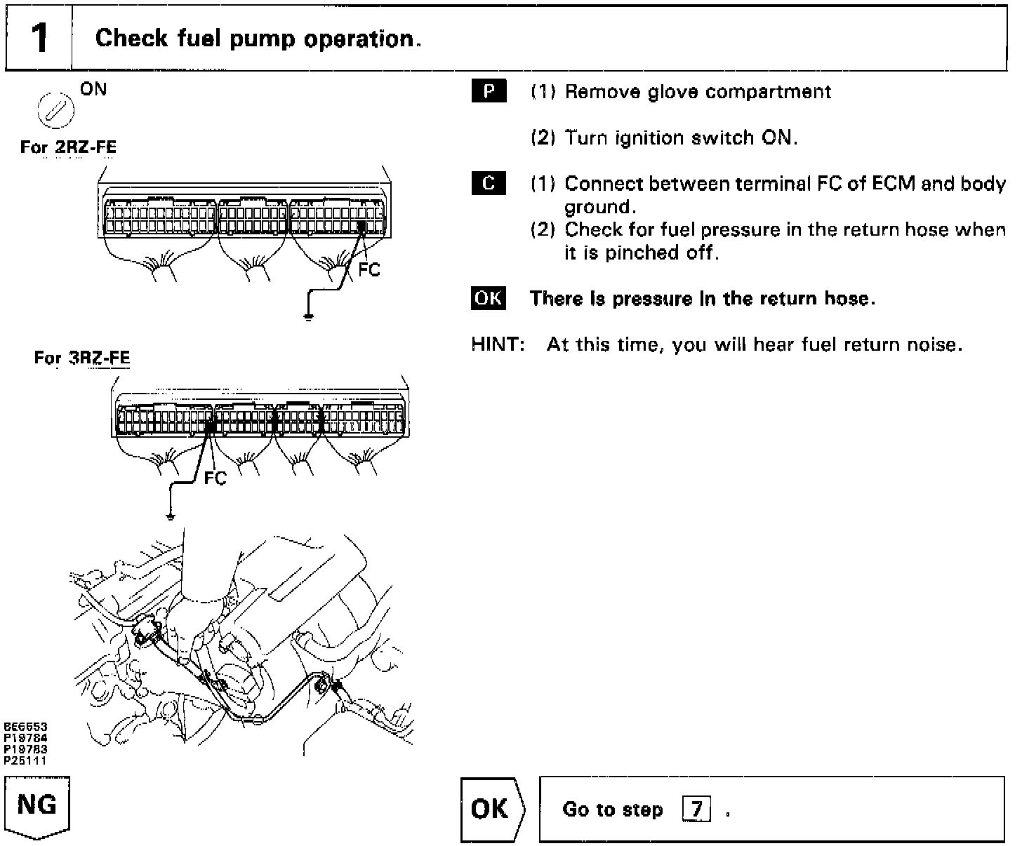 While the NE signal is generated (engine running), the ECM keeps Tr ON (circuit opening relay ON) and the fuel pump also keeps operating.