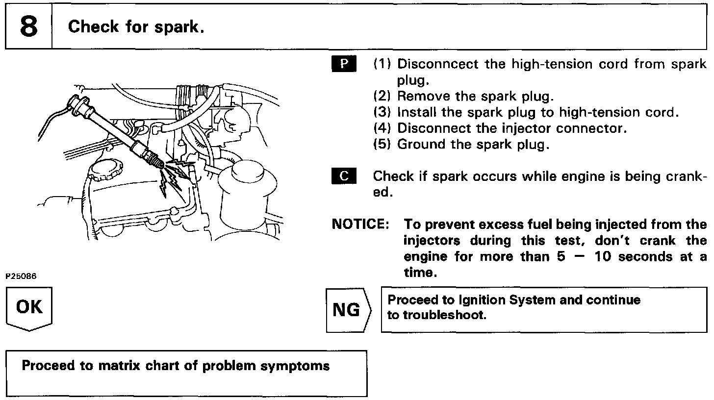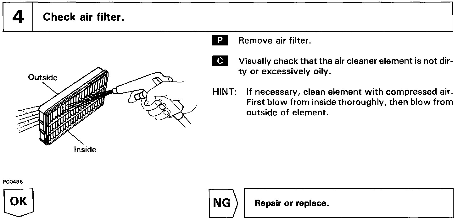 In many cases, by carrying out the basic engine check shown in the above flow chart, the location causing the problem can be found quickly and efficiently. Therefore, use of this check is essential in engine troubleshooting.