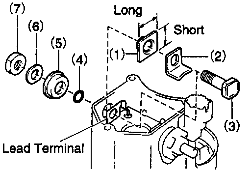 Remove the terminal nut, wave washer, terminal insulator (outside), O-ring, terminal bolt. contact plate and terminal insulator (inside).