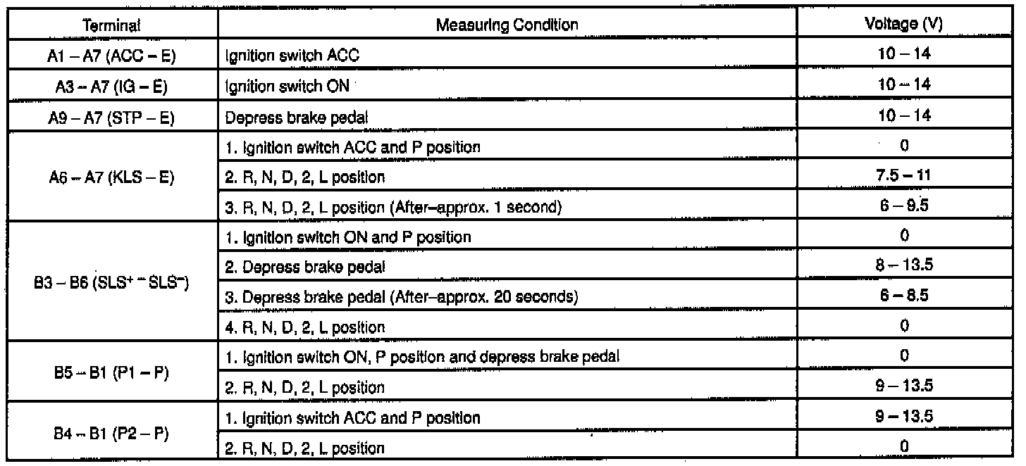 Shift Lock ECU, Harness Side: Floor Shift:
