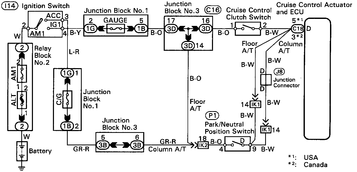 When the clutch pedal is depressed, the clutch switch sends a signal to the cruise control ECU. When the signal is input to the cruise control ECU during cruise control driving, the cruise control ECU cancels cruise control.