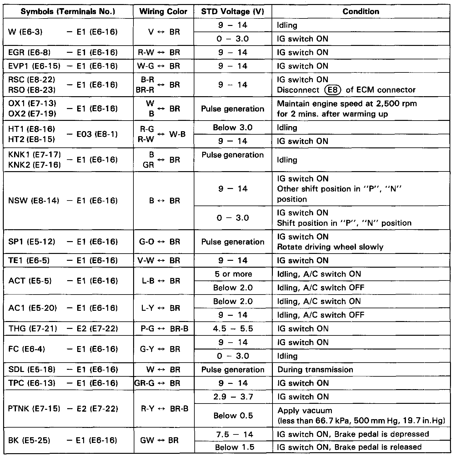 Standard Values Of ECM Terminals Chart 2 Of 2: