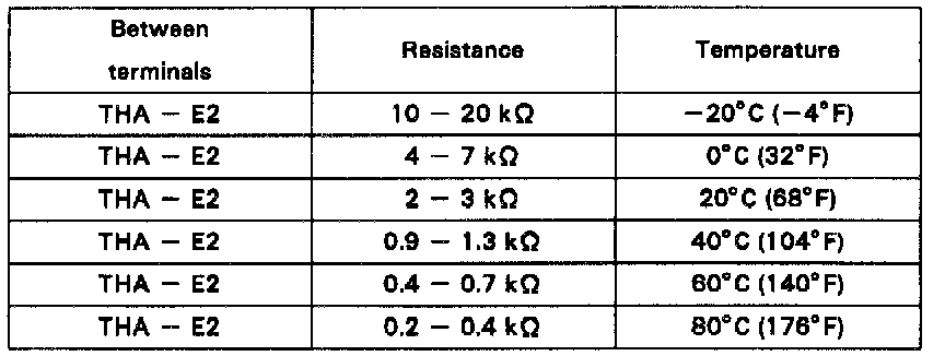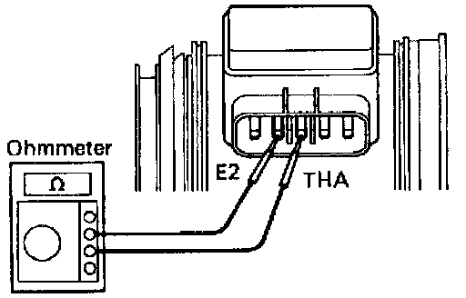 Using an ohmmeter, measure the resistance between terminals THA and E2.