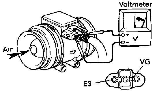 (b) Using a voltmeter, connect the positive (+) tester probe to terminal VG and negative (-) tester probe to terminal E3.