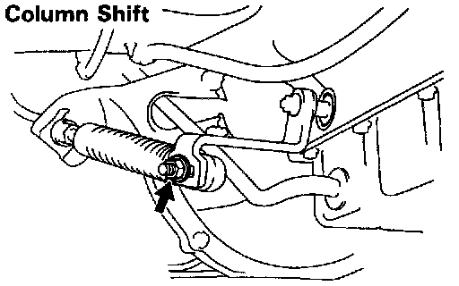 (e) While holding the shift lever lightly toward the R position side, adjust the control shaft lever nut.