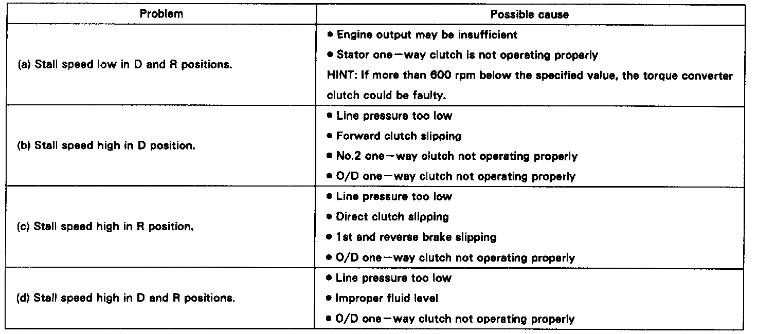 The object of this test is to check the overall performance of the transmission and engine by measuring the stall speeds in the D and R positions.