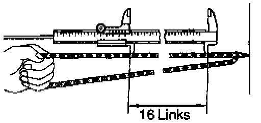 NOTICE: Vernier calipers must contact the chain rollers for measuring.