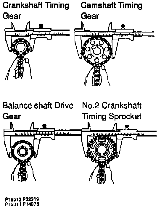 c. Using vernier calipers, measure the timing gear and timing sprocket diameter with the chain.