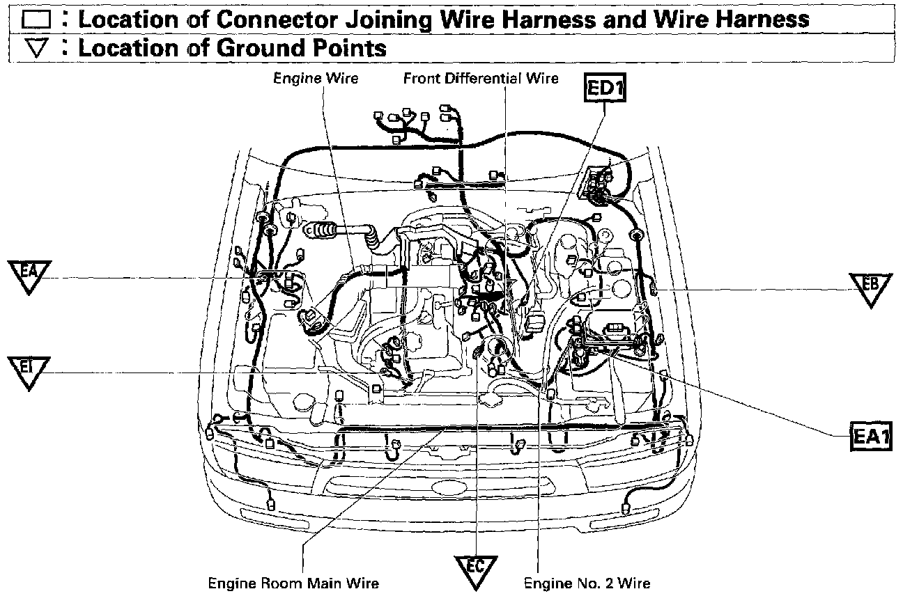 Location Of Connector Joining Wire Harness And Wire Harness Ground Points (Fig 38):