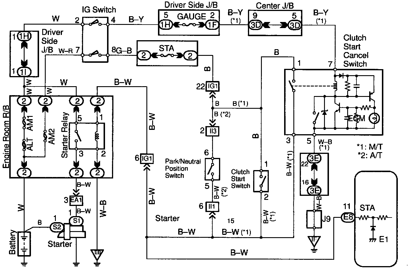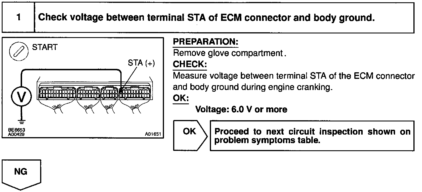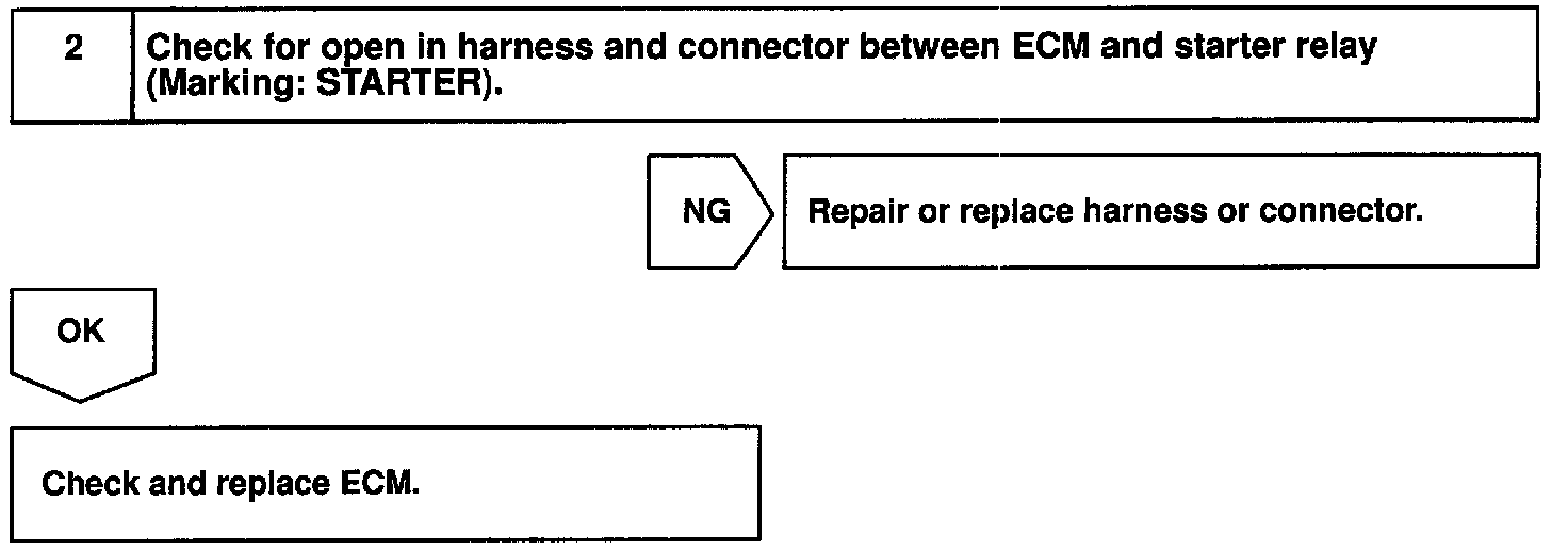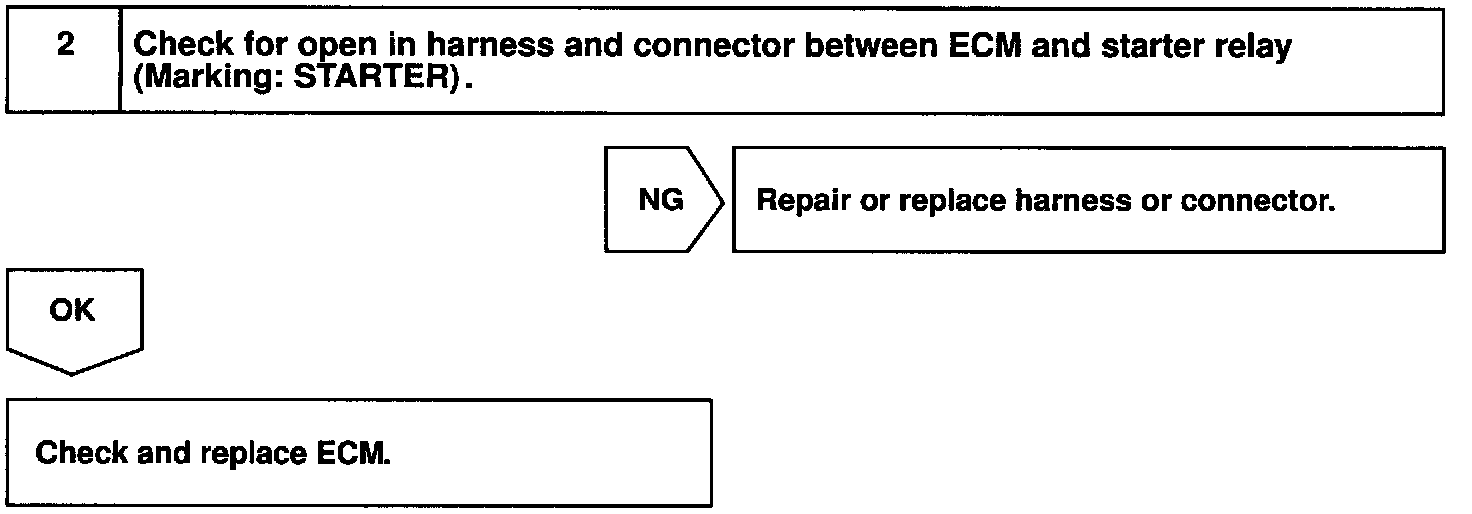 When the engine is cranked, the intake air flow is slow, so fuel vaporization is poor. A rich mixture is therefore necessary in order to achieve good startability. While the engine is being cranked, the battery positive voltage is applied to terminal STA of the ECM. The starter signal id mainly used to increase the fuel injection volume for the starting injection control and after-start injection control.