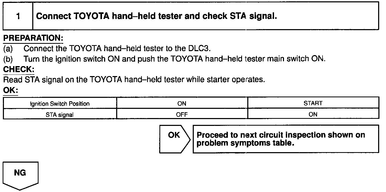 HINT: This diagnostic chart is based on the premise that the engine is cranked normally. If the engine is not cranked, proceed to the problem symptoms table.