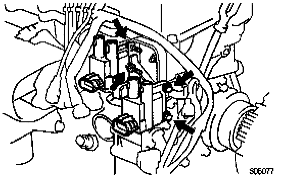 (b) Remove the 4 bolts and 2 ignition coils from the bracket.