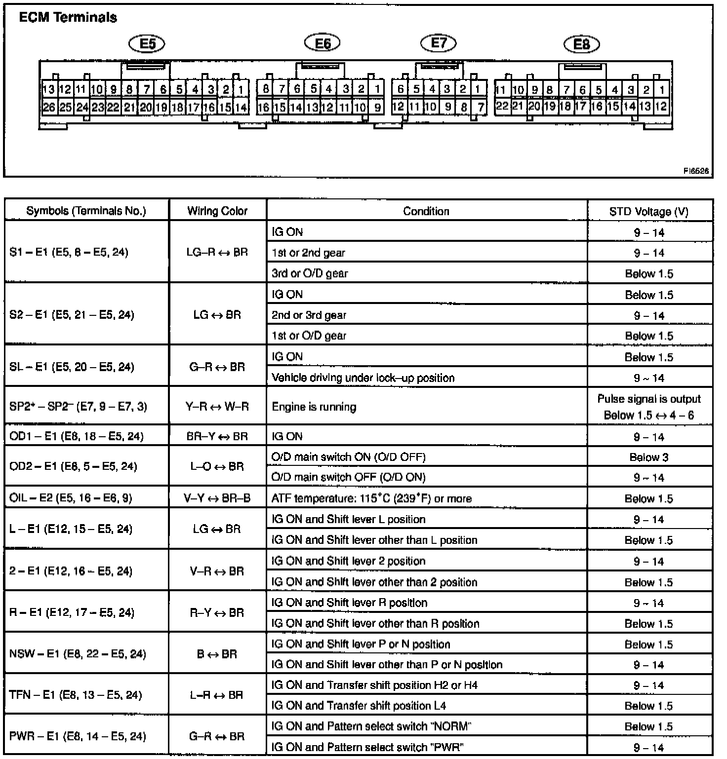 Pinout Values and Diagnostic Parameters