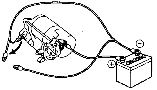Disconnect the negative (-) lead from the switch body.Check that the clutch pinion gear returns inward.