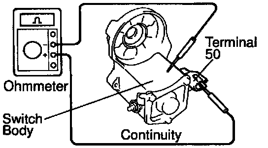 Using an ohmmeter, check that there is continuity between terminal 50 and the switch body.