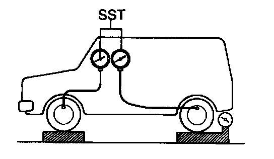 2. Install Load Sensing Proportioning Valve (LSPV) gauge Special Service Tool (SST) 09709-29018 or equivalent, and bleed air.