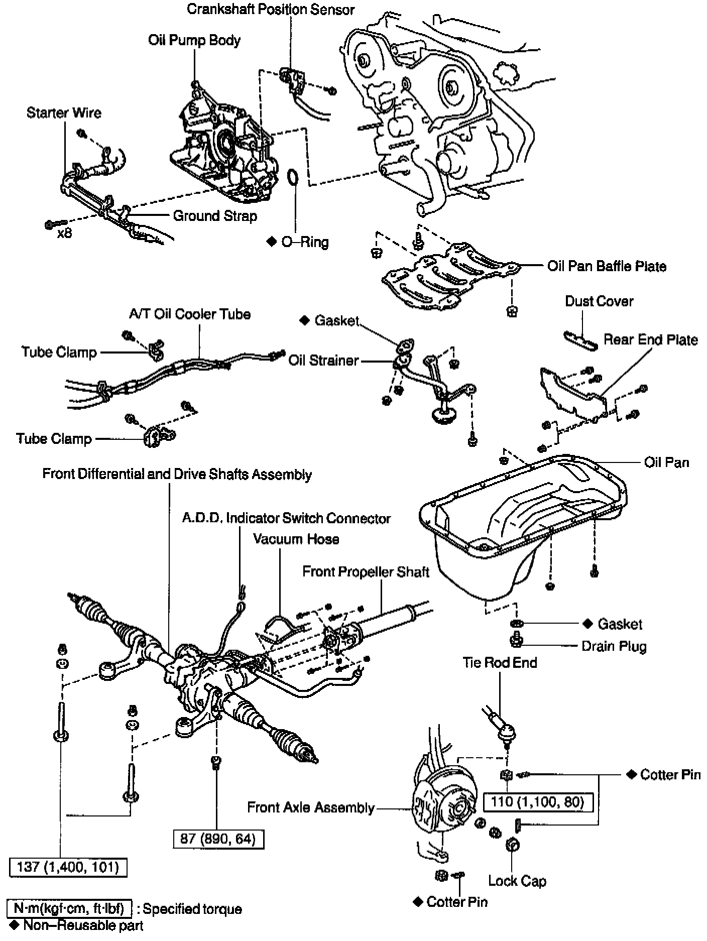 FRONT AXLE, A/T COOLER TUBE AND OIL PUMP BODY