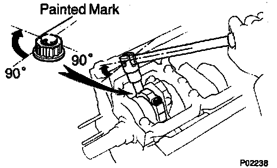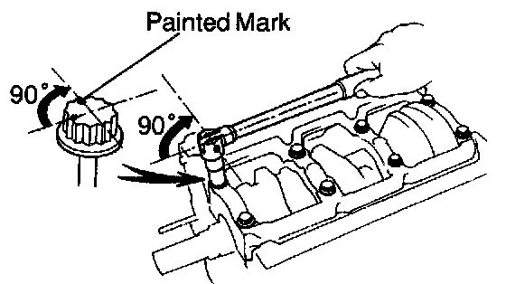 d. Retighten the connecting rod cap nuts 90° as shown.