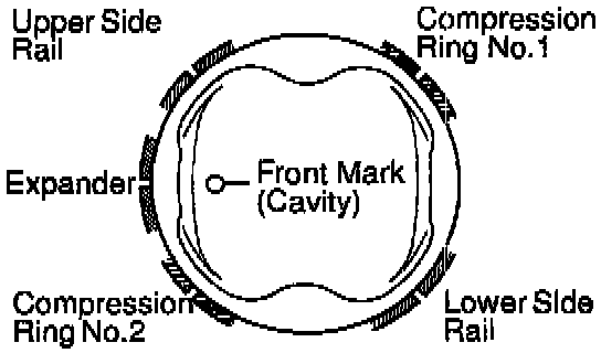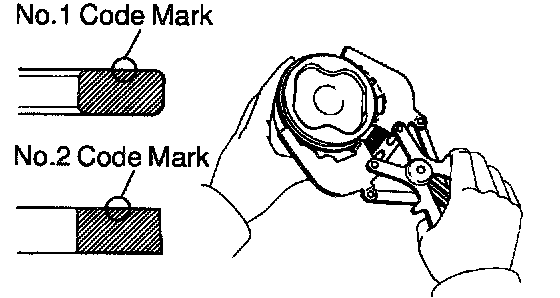 b. Using a piston ring expander, install the 2 compression rings with the code mark facing upward.