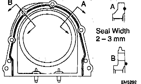b. Apply seal packing to the oil seal retainer as shown in the illustration.