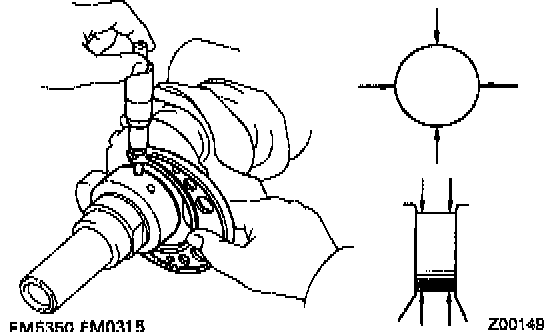 b. Check each main journal and crank pin for taper and out-of-round as shown.